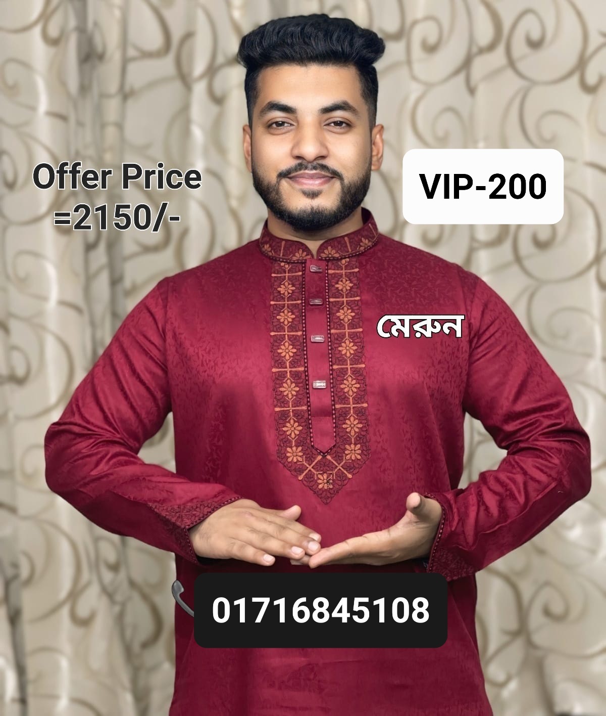 স্পেশাল লাক্সারি VIP পাঞ্জাবি= VIP-200 (মেরুন)